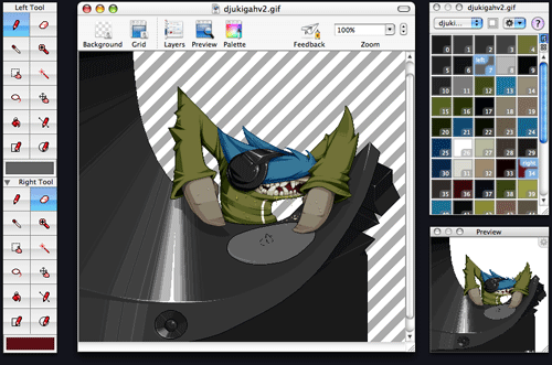 Tem semelhanças com um editor de imagem normal, mas as suas ferramentas são específicas para a criação de Pixel Art. Pixen permite, também, a criação de animações em formato GIF ou QuickTime.